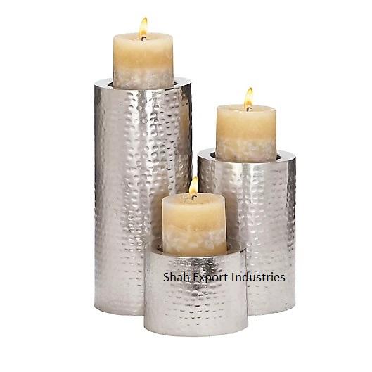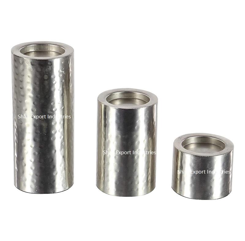 ชุดเชิงเทียนโลหะสีเงิน3ชิ้นสำหรับงานแต่งงานและวันคริสต์มาสแท่นวางเทียนทรงกระบอกสำหรับตกแต่ง