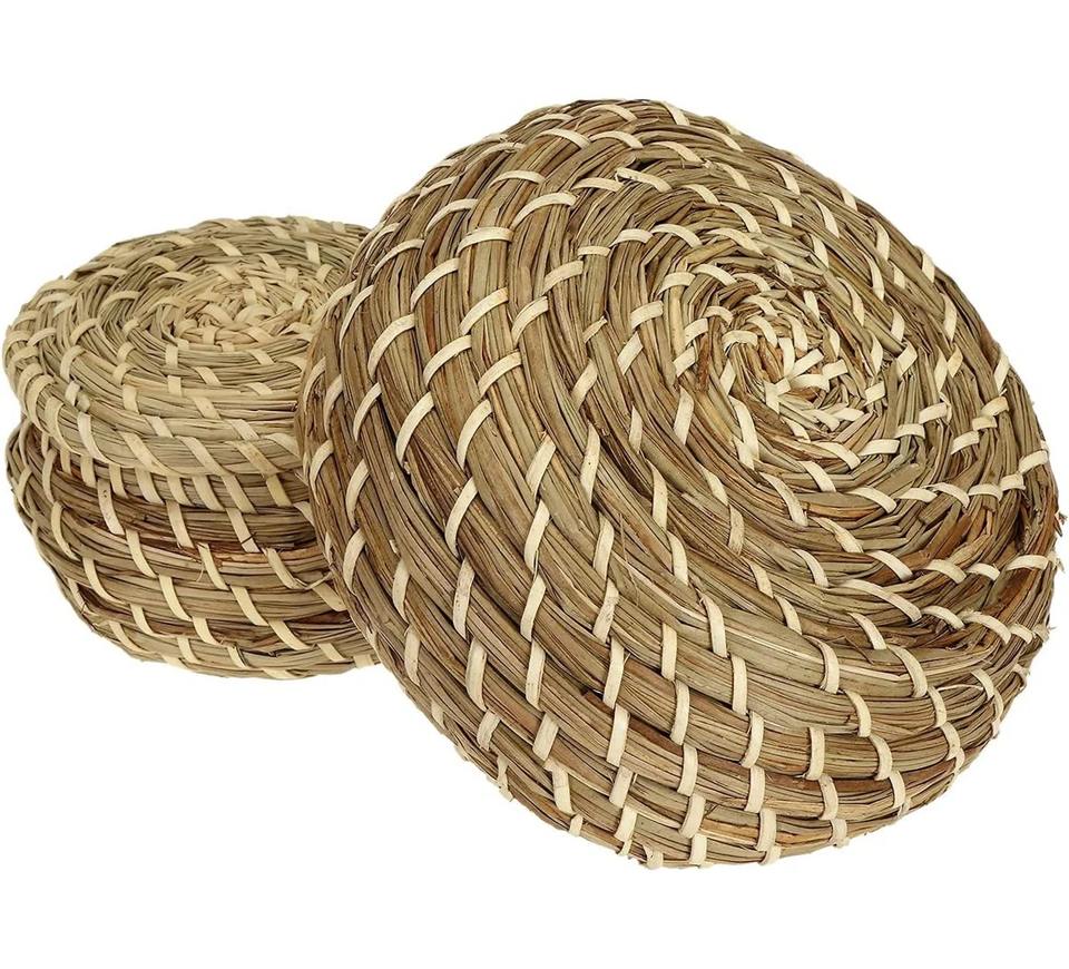 ชุดกล่องหญ้าทะเลขนาดเล็ก 3 ใบ พร้อมฝาปิด กล่องเก็บของทำมือ เป็นมิตรกับสิ่งแวดล้อม ของตกแต่งบ้านจากธรรมชาติ ขายส่งจากเวียดนาม