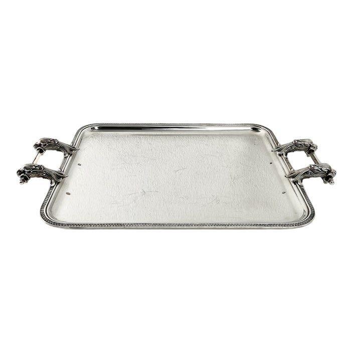 Set Of 4 Cast Aluminum Serving Trays Silver Finish Rectangle Shape For Home & Hotels Tabletop Food & Drinks Serving Trays