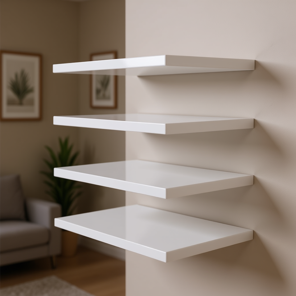 Set Of 4 High Gloss White Engineered Wood Display Shelves For Wall Storage Organization