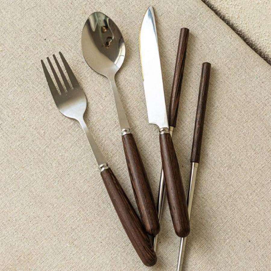 ชุดช้อนส้อมโลหะ 4 ชิ้น พิมพ์โลโก้ได้ตามต้องการ ชุดอุปกรณ์รับประทานอาหารเกรดอาหารสำหรับร้านอาหาร