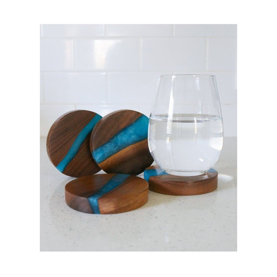ชุดแผ่นรองแก้วทรงสี่เหลี่ยมทันสมัย 4 ชิ้น ทำจากไม้วอลนัทสีเข้มคุณภาพสูงและเรซิ่นสีเขียว สำหรับตกแต่งบ้าน บาร์ และเป็นของขวัญ