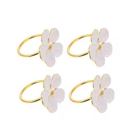 ชุดผ้าเช็ดปากเหล็กบริสุทธิ์4ชิ้นพร้อมห่วงรัดผ้าเช็ดปากคุณภาพสูงสำหรับงานแต่งงาน
