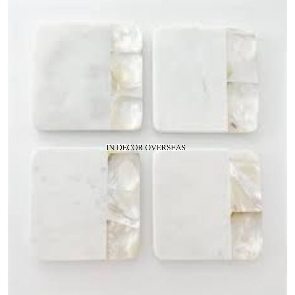 ชุดจานรองแก้วหินอ่อนสีขาวทรงกลม4ชิ้นพร้อมขอบชุบทองจากผู้ผลิตในอินเดีย