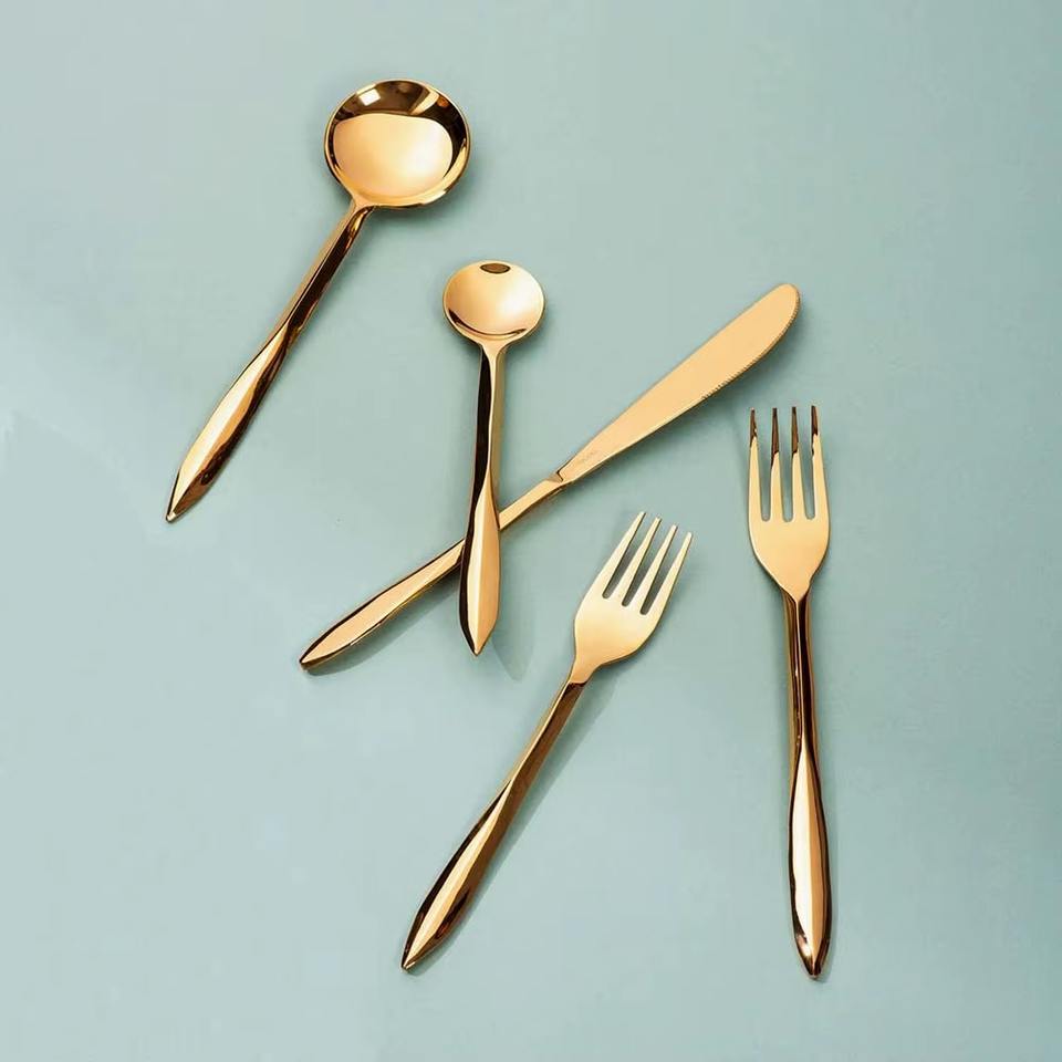 ชุดเครื่องใช้บนโต๊ะอาหารทำจากสเตนเลสสตีล5ชิ้นมีด้ามจับกระจกขัดเงาเหมาะสำหรับโต๊ะอาหารห้องครัวใช้ทุกวันทำจากโลหะแท้ในอินเดีย