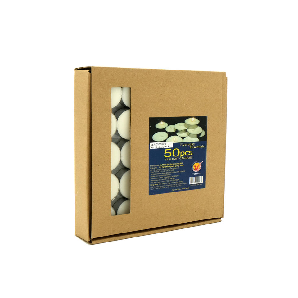 Packaging Description:50 Pressed Tealight Candles in Alu Cups / Packaged in Cardboard Boxes