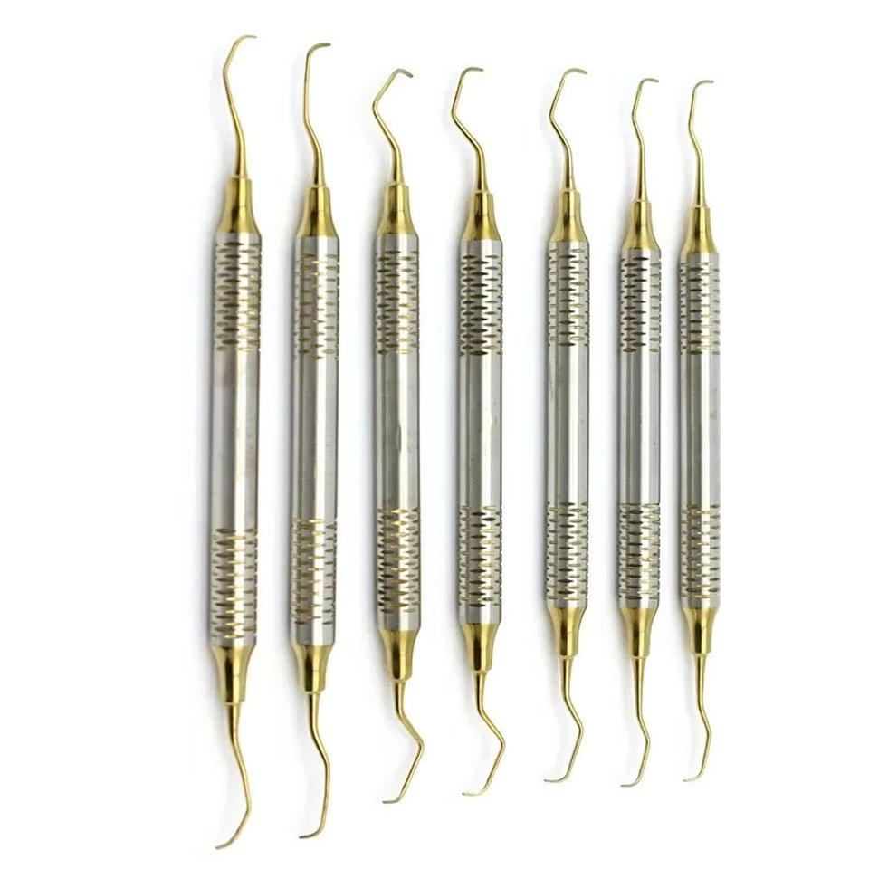 Set 7 Gracey Curette Periodontal Hollow Handle White Steel Surgical Scaler Dental Composite Filling Instrument Double Ended