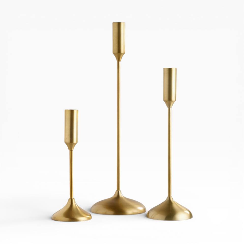 ชุดเชิงเทียนโลหะสีทองสามระดับความสูง ดีไซน์เรียบหรูสำหรับการตกแต่งภายในที่ทันสมัยและหรูหรา