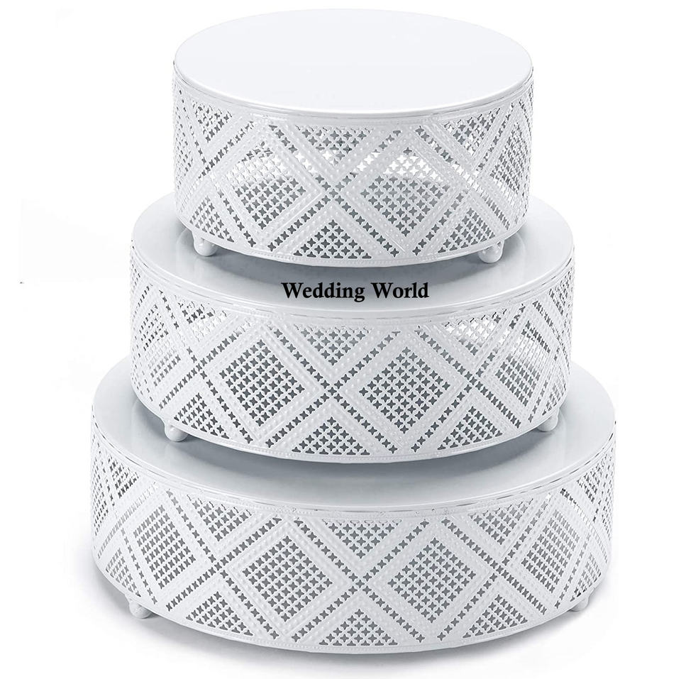 ชุดแท่นวางเค้กโลหะ3ชิ้นแท่นวางเค้กทำมือเคลือบผงสีขาวคุณภาพสูงขายส่ง