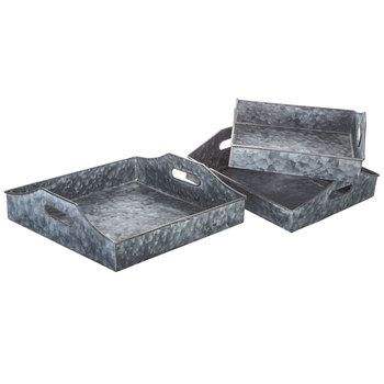 ชุดถาดเก็บของในครัวชุบสังกะสีด้วยมือ3ชิ้นพร้อมที่จับชุดถาดโบฮีเมียนที่มีชื่อเสียง