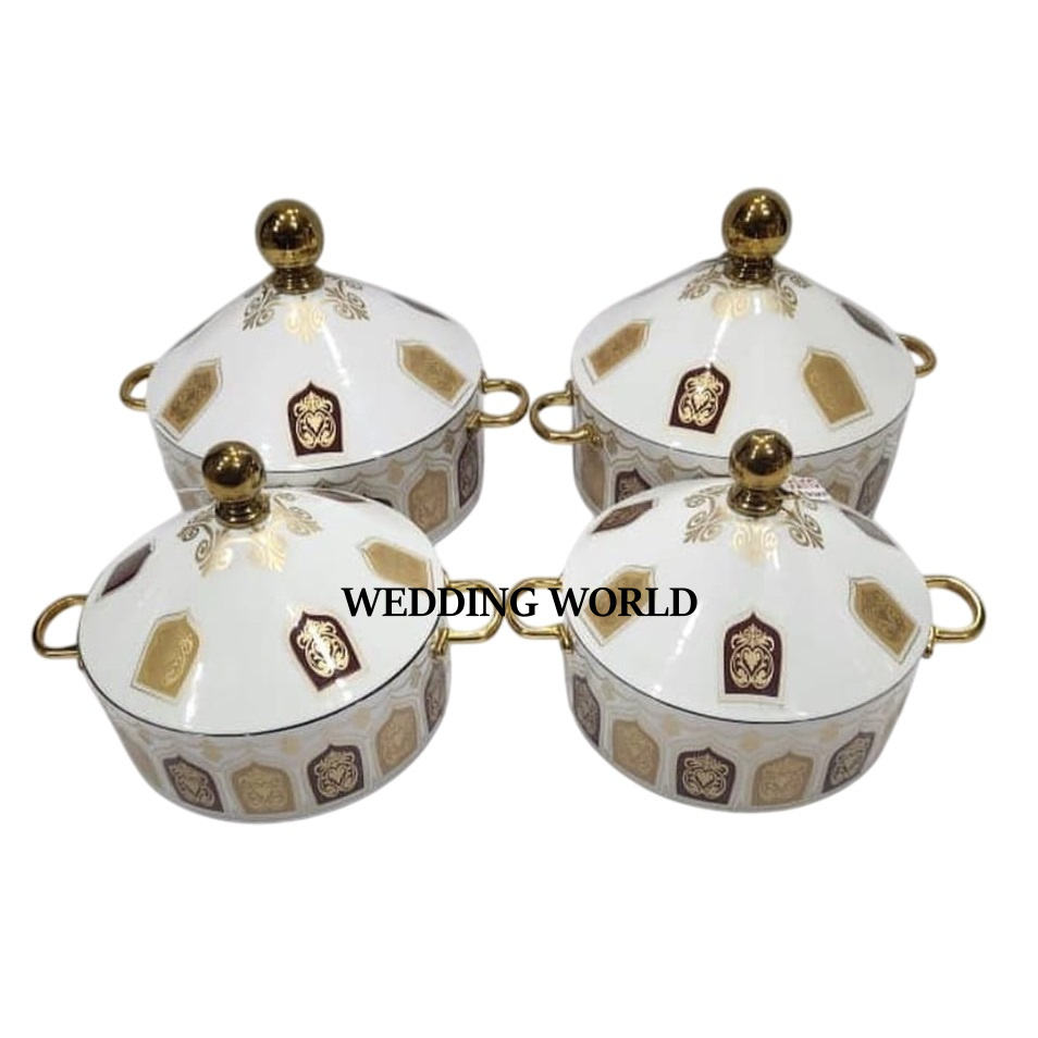 ชุดหม้อสแตนเลสสามชิ้นหม้อไฟทรงกลมดีไซน์เนอร์หรูหราหม้ออุ่นอาหารเดือนรอมฎอน