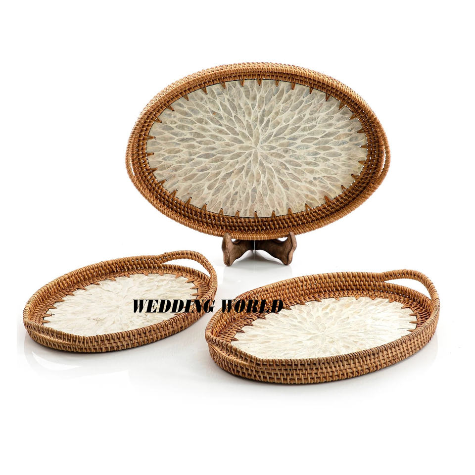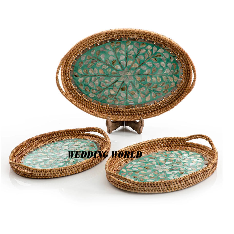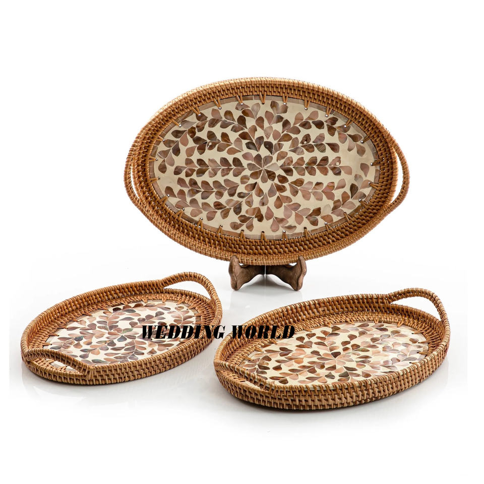 ชุดถาดหวายสำหรับเสิร์ฟสามชิ้นดีไซน์สร้างสรรค์ทำด้วยมือถาดหวายแบบคลาสสิก