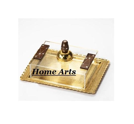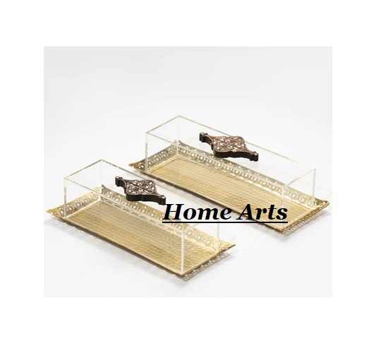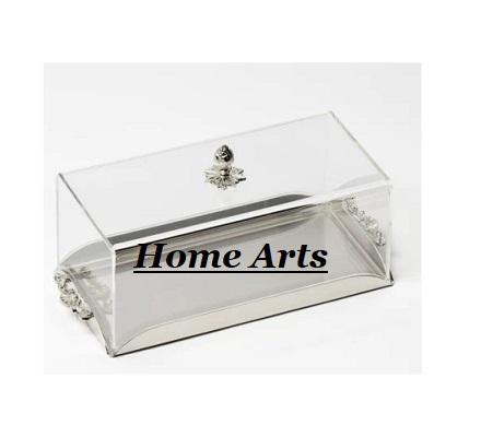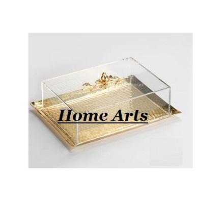 ถาดขนมสแตนเลสแบบตอกลายพร้อมฝาครอบอะคริลิก ดีไซน์ทันสมัย รูปทรงสี่เหลี่ยมผืนผ้า