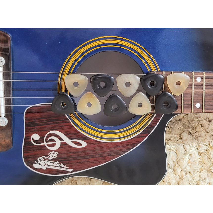 ชุดปิ๊กกีตาร์รูปสามเหลี่ยมทำจากเขาควายแท้ 10 ชิ้น พร้อมรูสำหรับจับกระชับ ราคาสุดคุ้ม