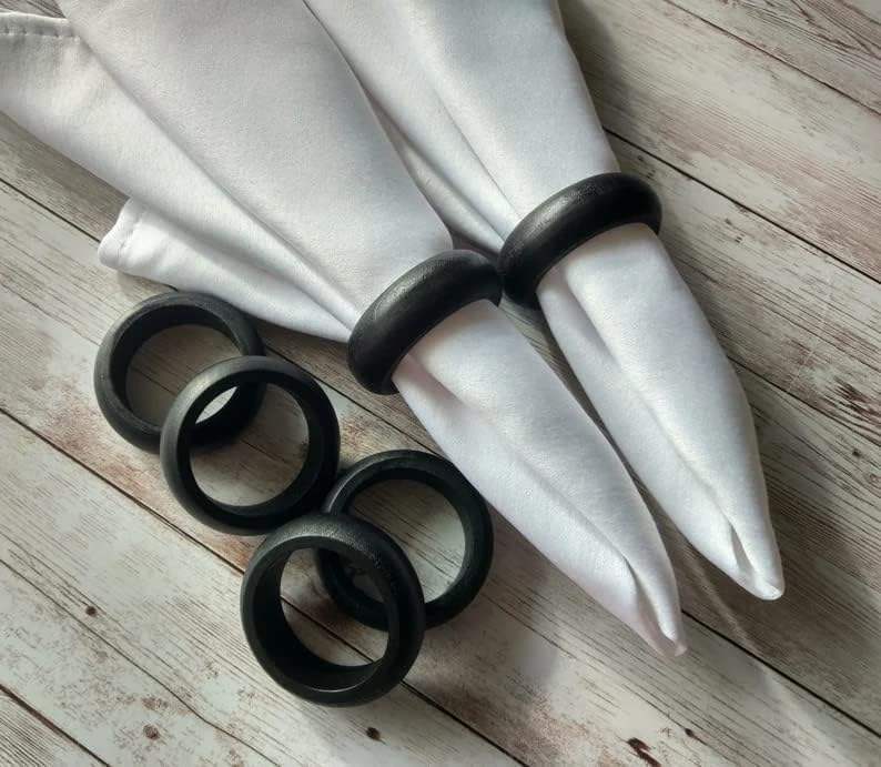 Set of 12 Black Wood Half Round Napkin Rings for Festive Dining Farmhouse Decor Party Thanksgiving Christmas Other Occasions