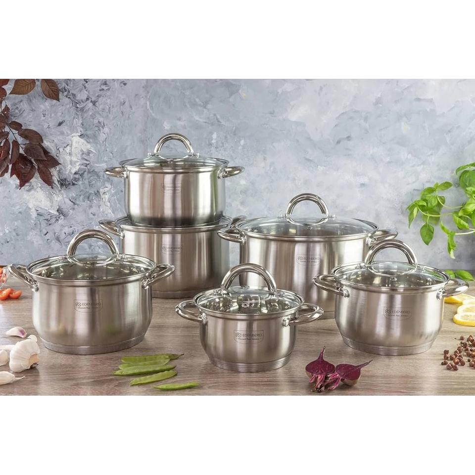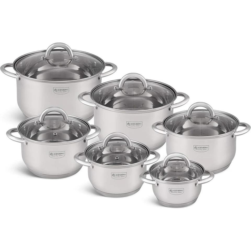 ชุดหม้อซุปและหม้อต้มน้ำซุปสแตนเลส 6 ใบ พร้อมฝาแก้ว 6 ใบ จำนวน 12 ชิ้น ขายส่ง