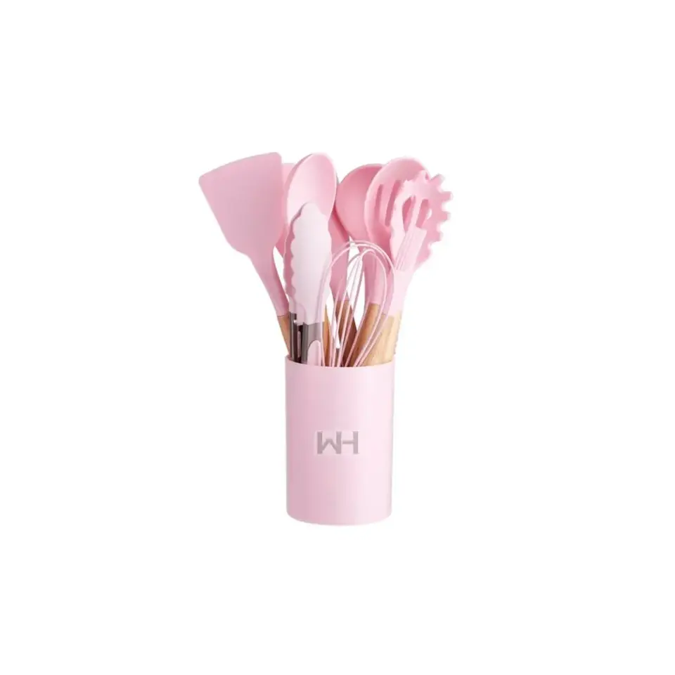 ชุดเครื่องครัวซิลิโคนสีชมพู12ชิ้นเครื่องใช้ในครัวปลอดภัยสั่งซื้อขั้นต่ำ12ชิ้น
