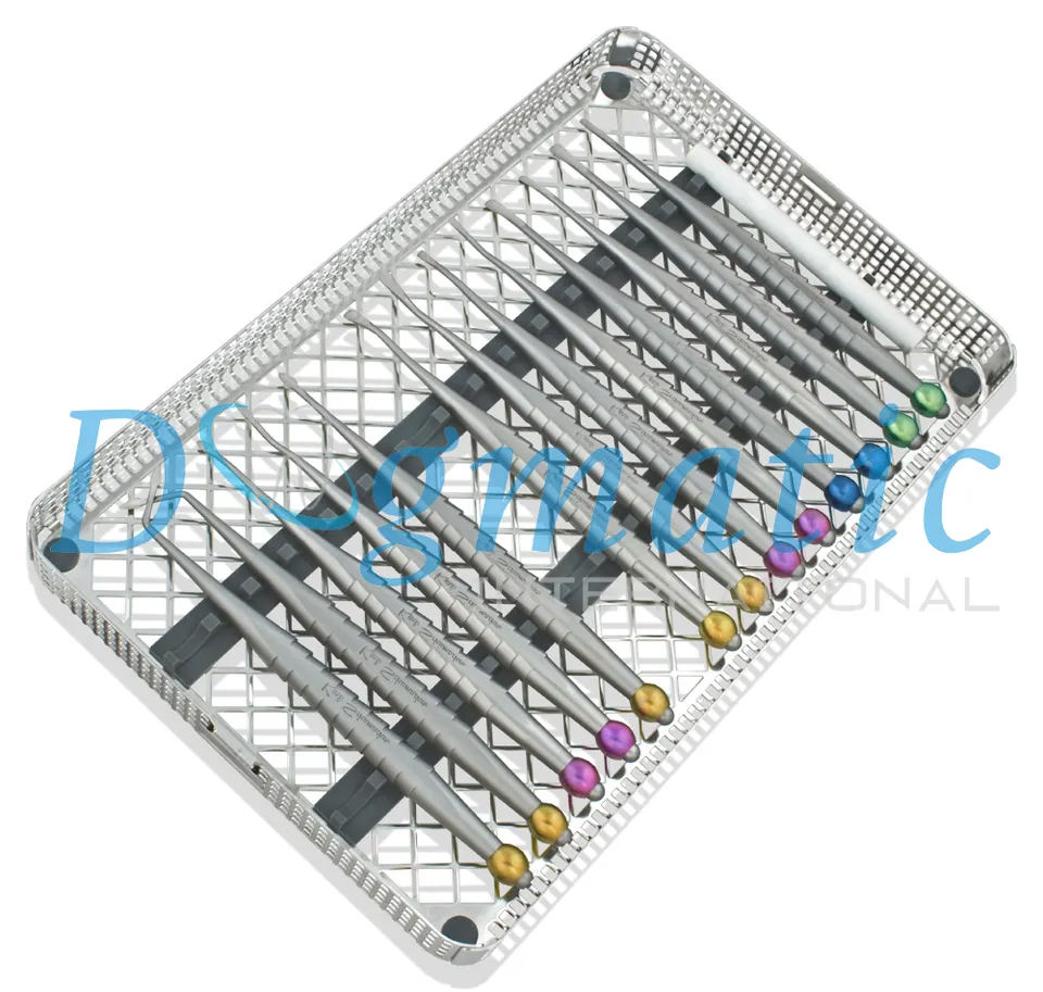 Set of 13 Dental Luxating Elevators Spade kit Sharpening Stone