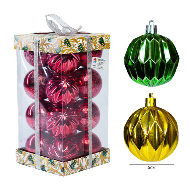 ชุดเครื่องประดับตกแต่งต้นคริสต์มาสพลาสติกคุณภาพสูง RAINBOW จำนวน 16 ชิ้น ขนาด 6 ซม. ลูกบอลสีพื้นสำหรับตกแต่งในช่วงเทศกาล