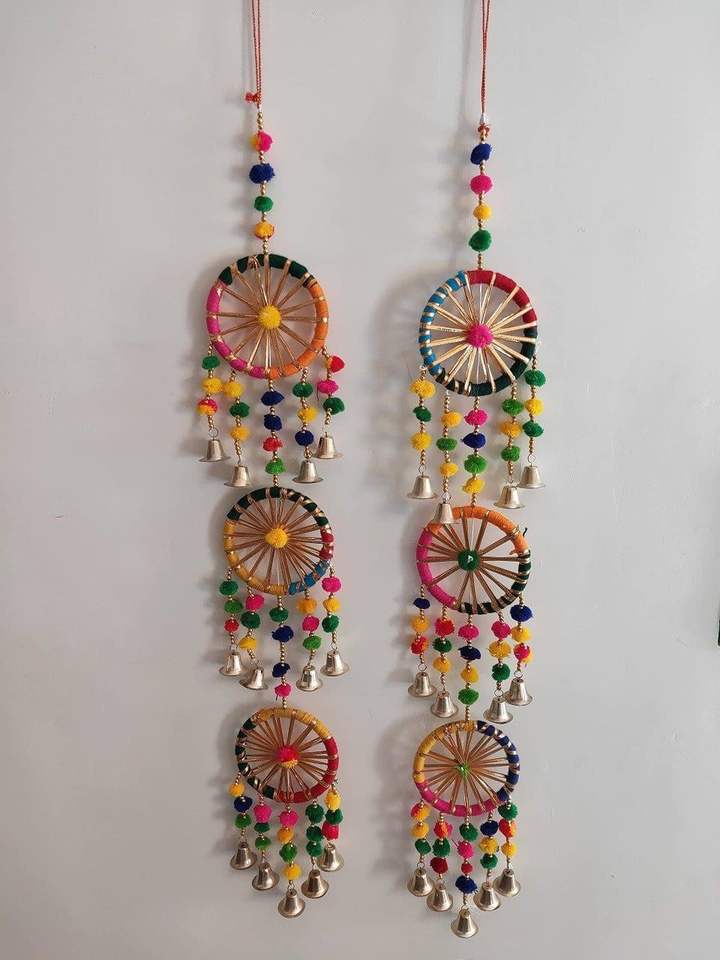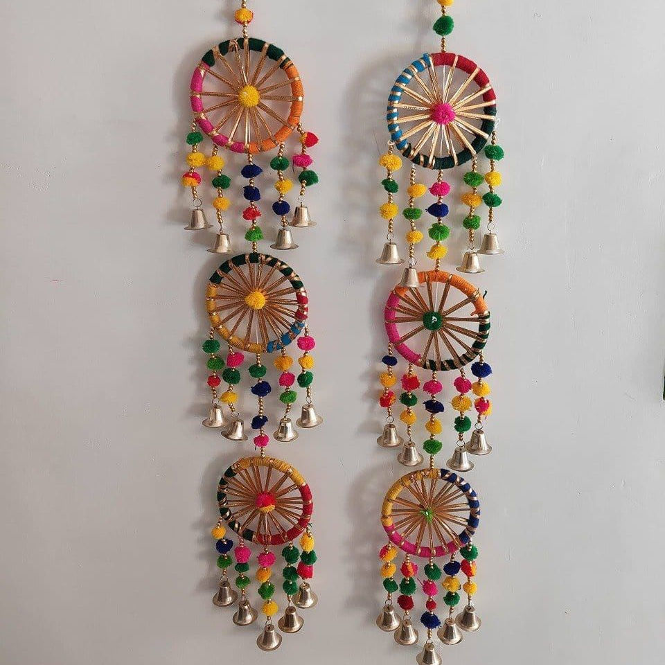 ชุด2 3ฟุตงานฝีมือราจาสธานปอมปอมจักรีแขวนทอแรนส์พวงมาลัยพร้อมกระดิ่งสีทอง
