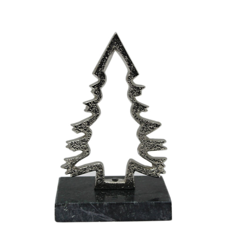 ชุดต้นคริสต์มาสทำจากอลูมิเนียมและหินอ่อน2ต้นพร้อมฐานเงินและสีธรรมชาติต้นคริสต์มาสประดิษฐ์ขนาดใหญ่สำหรับตกแต่งบนโต๊ะ