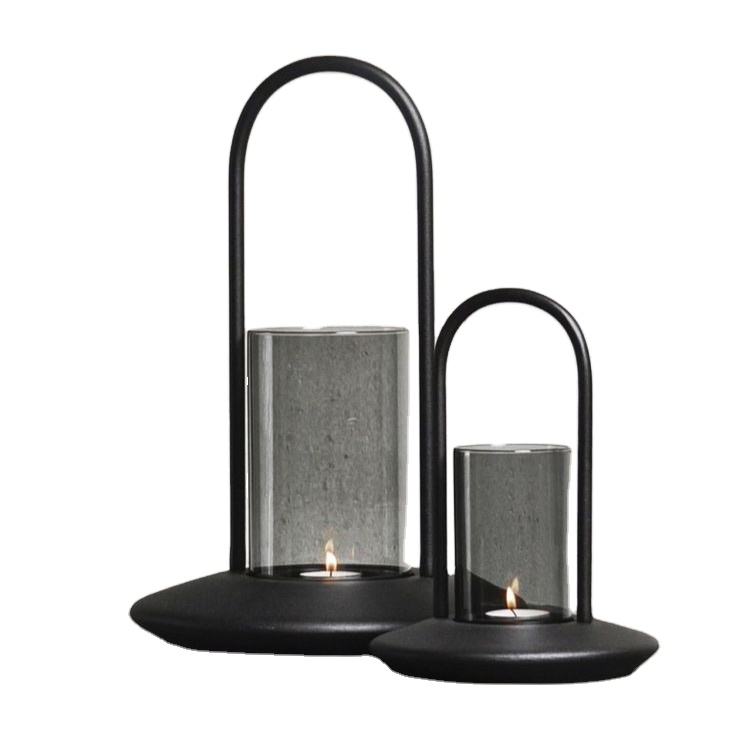 ชุดเชิงเทียนสำหรับตกแต่งรูปทรงสวยงาม2ชิ้นเชิงเทียนสีดำด้านพร้อมภาชนะแก้ว