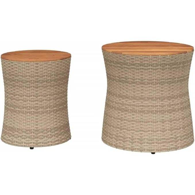 ชุดโต๊ะหวายกลมสีเบจ2ตัวสำหรับกลางแจ้งสำหรับลานระเบียงห้องนอนโต๊ะของว่างอเนกประสงค์สำหรับสวนครัวงานเลี้ยงชายหาด