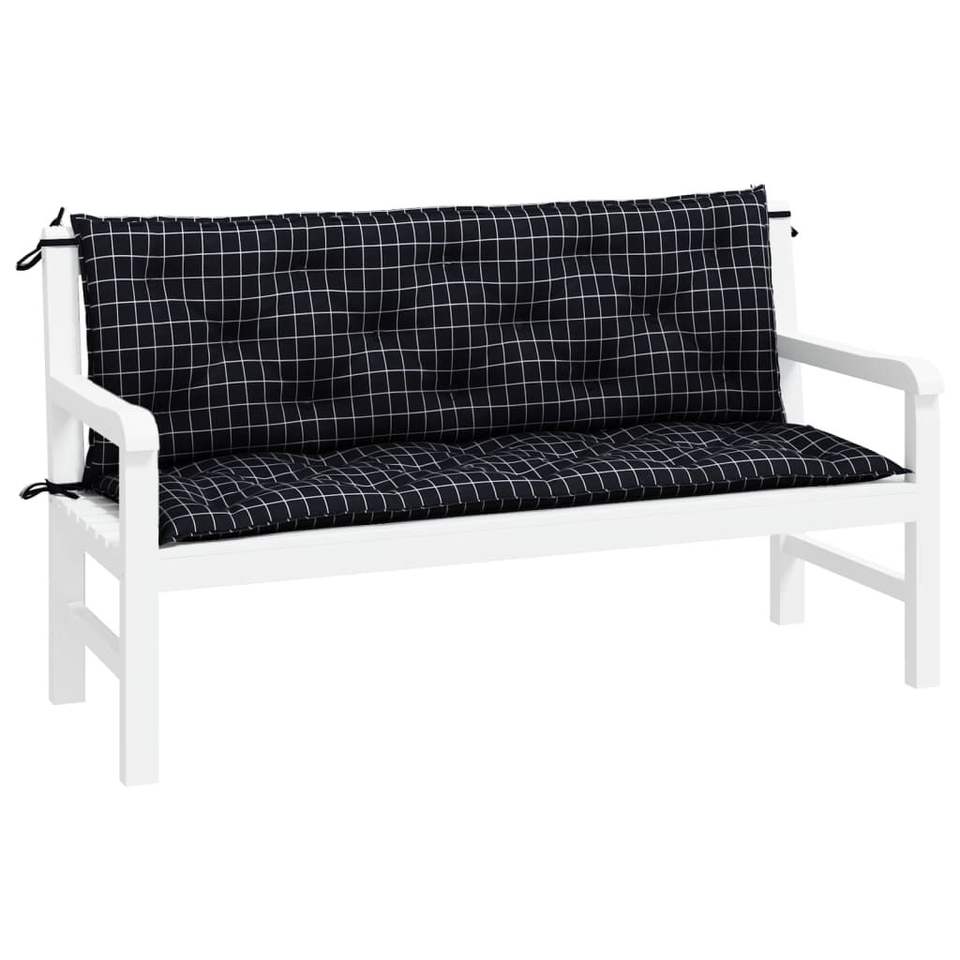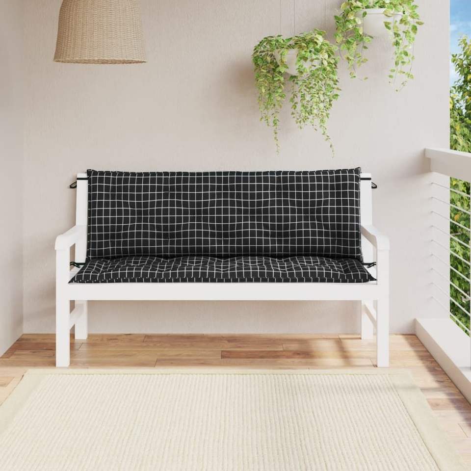 ชุดเบาะรองนั่งสำหรับม้านั่งในสวนลายตารางหมากรุกสีดำ 2 ชิ้น ผลิตจากโพลีเอสเตอร์ 100% สำหรับใช้งานกลางแจ้ง