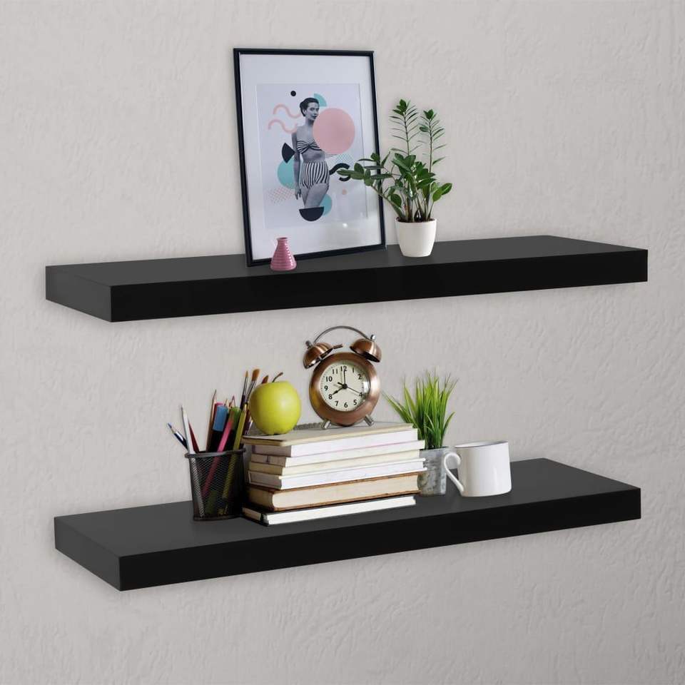 ชุดชั้นวางติดผนัง MDF สีดำ 2 ชิ้น ขนาด 39.4x7.9x1.5 นิ้ว ชั้นวางโชว์สินค้าดีไซน์หรูหรา