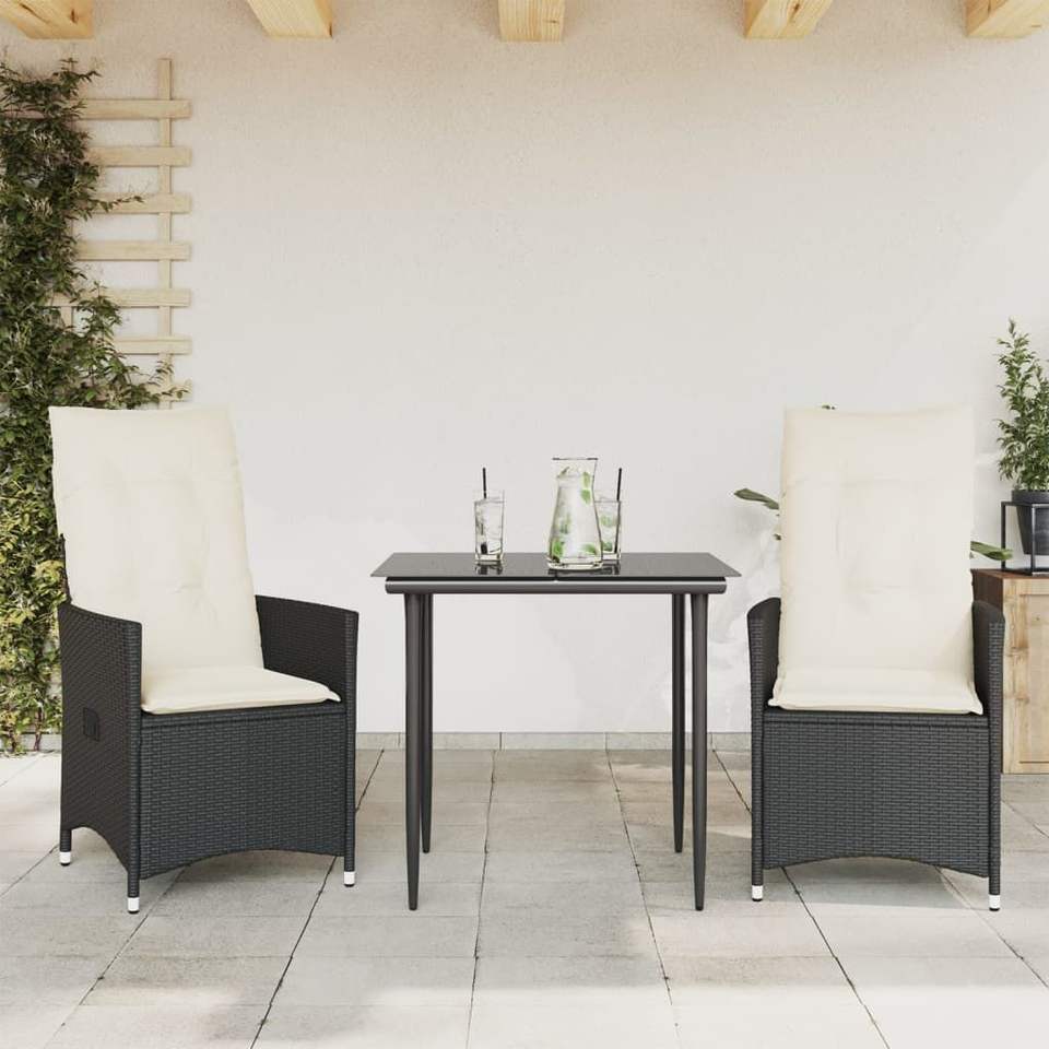 ชุดเฟอร์นิเจอร์สนามแบบปรับเอนได้สีดำ 2 ตัว เก้าอี้นั่งสบายสำหรับกลางแจ้ง