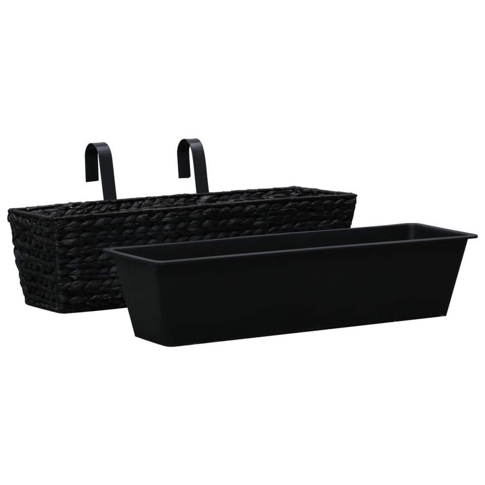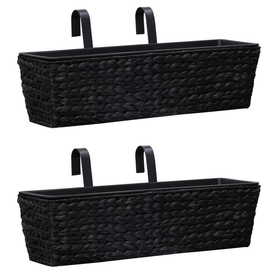 ชุดกระถางดอกไม้และกระถางปลูกต้นไม้ 2 ใบ สีดำ ทำจากผักตบชวาและโครงเหล็ก