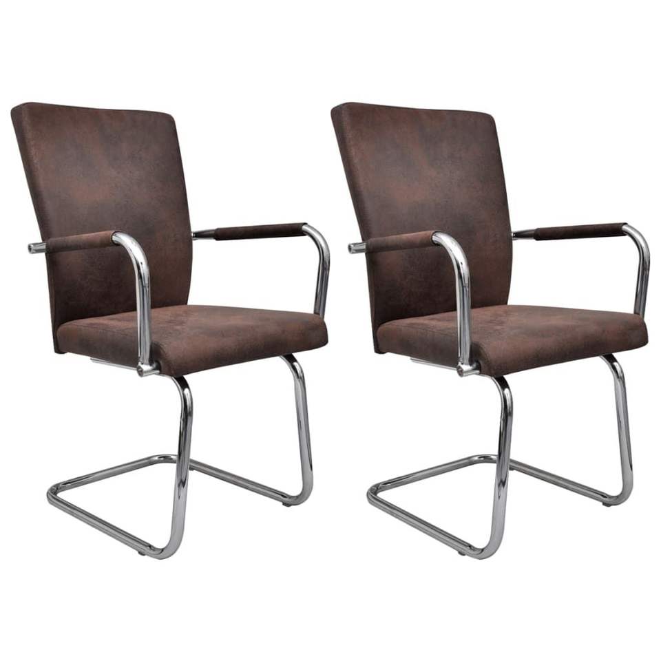 ชุดเก้าอี้รับประทานอาหารหนังกลับเทียมสีน้ำตาล 2 ตัว เหล็กเคลือบสีฝุ่น