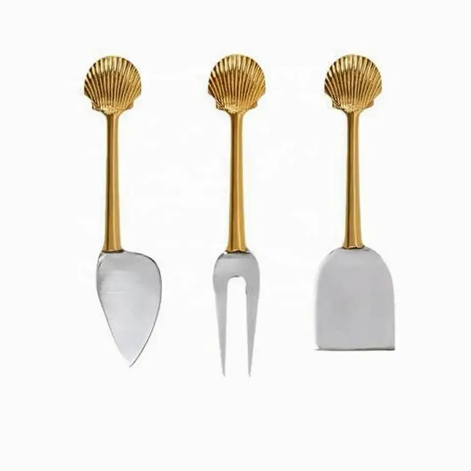 ชุดมีดหั่นชีสเนย2ชิ้นทำจากสเตนเลสสตีลพร้อมด้ามจับสีทองแบบโบราณเหมาะสำหรับงานแต่งงานและการรับประทานอาหารที่หรูหรา