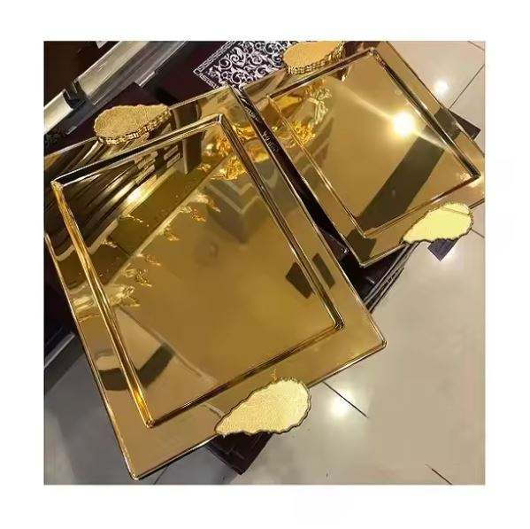 ชุดถาดเสิร์ฟสแตนเลสสีทองดีไซน์คลาสสิก 2 ชิ้นตกแต่งโต๊ะถาดเสิร์ฟอาหารในราคาที่ดีสําหรับการส่งออกจากอินเดีย
