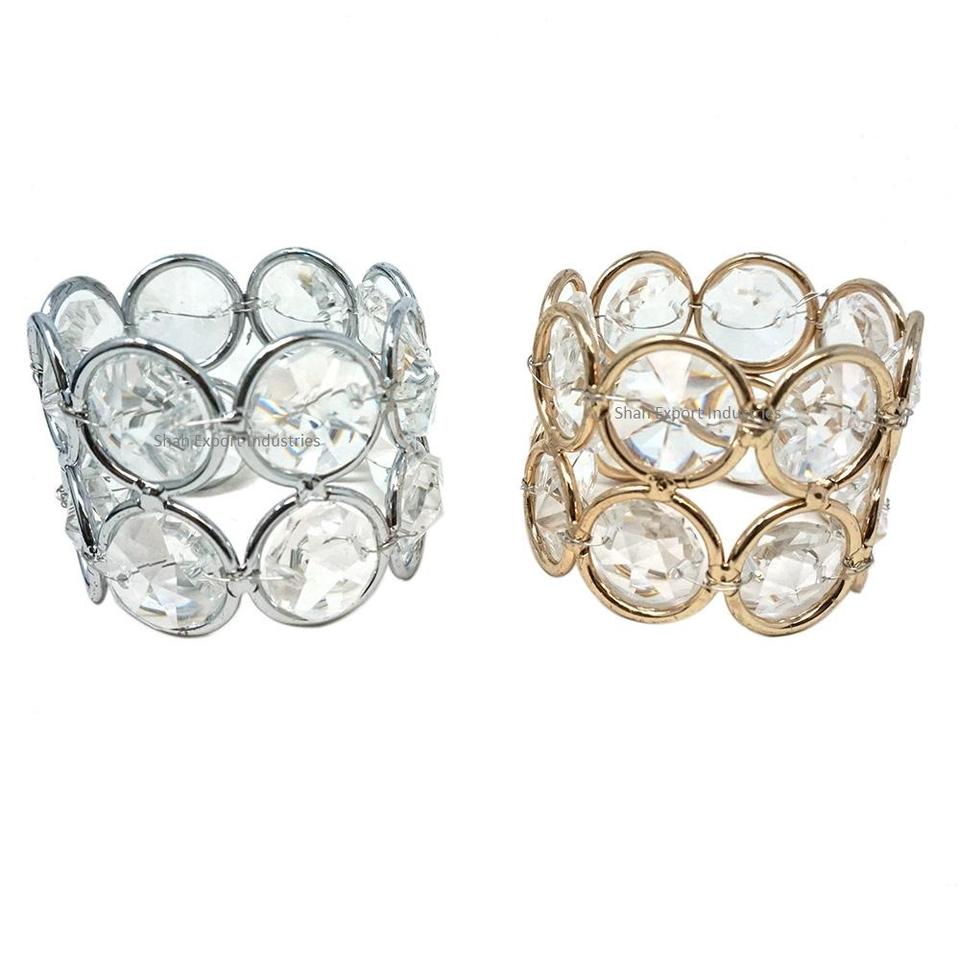 ชุดแหวนรองผ้าเช็ดปากทำจากโลหะลูกปัดคริสตัล2ชิ้นที่ใส่ผ้าเช็ดปากสีเงินเป็นประกายสำหรับงานแต่งงานงานเลี้ยงอาหารค่ำ