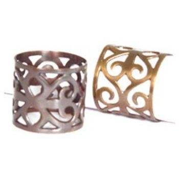 ชุดแหวนรองผ้าเช็ดปากทำจากโลหะสแตนเลส2ชิ้นมีสไตล์สำหรับใช้บนโต๊ะอาหาร