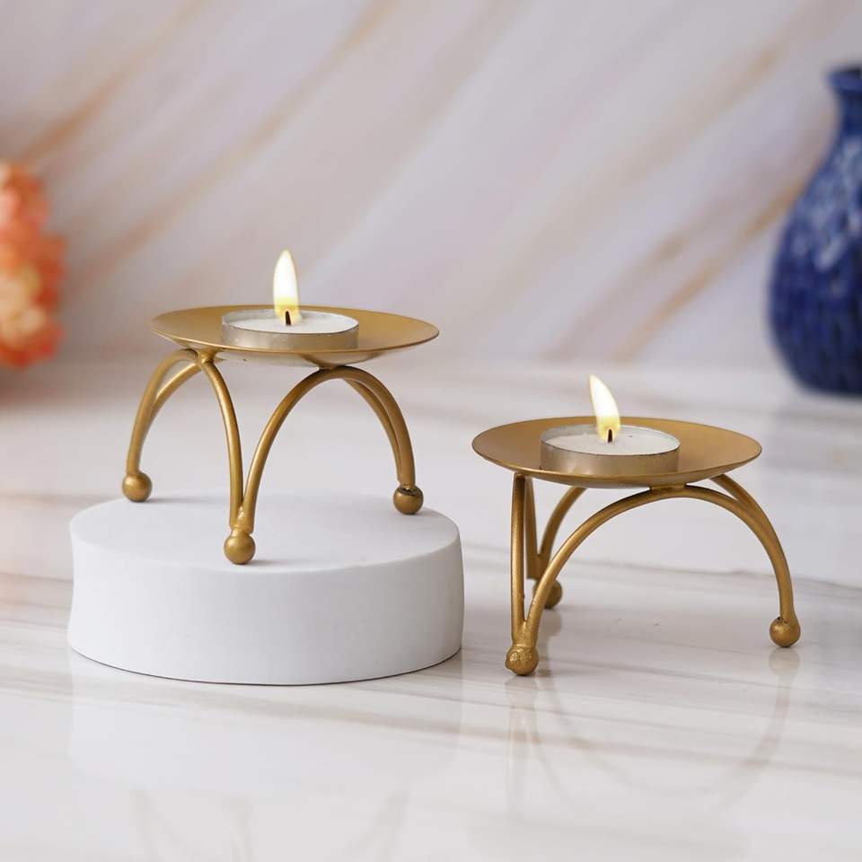 ชุดที่วางเทียนทีไลท์โลหะสีทองสำหรับตกแต่ง2ชิ้นสำหรับงานแต่งงาน Diwali คริสต์มาส & ของตกแต่งบ้าน