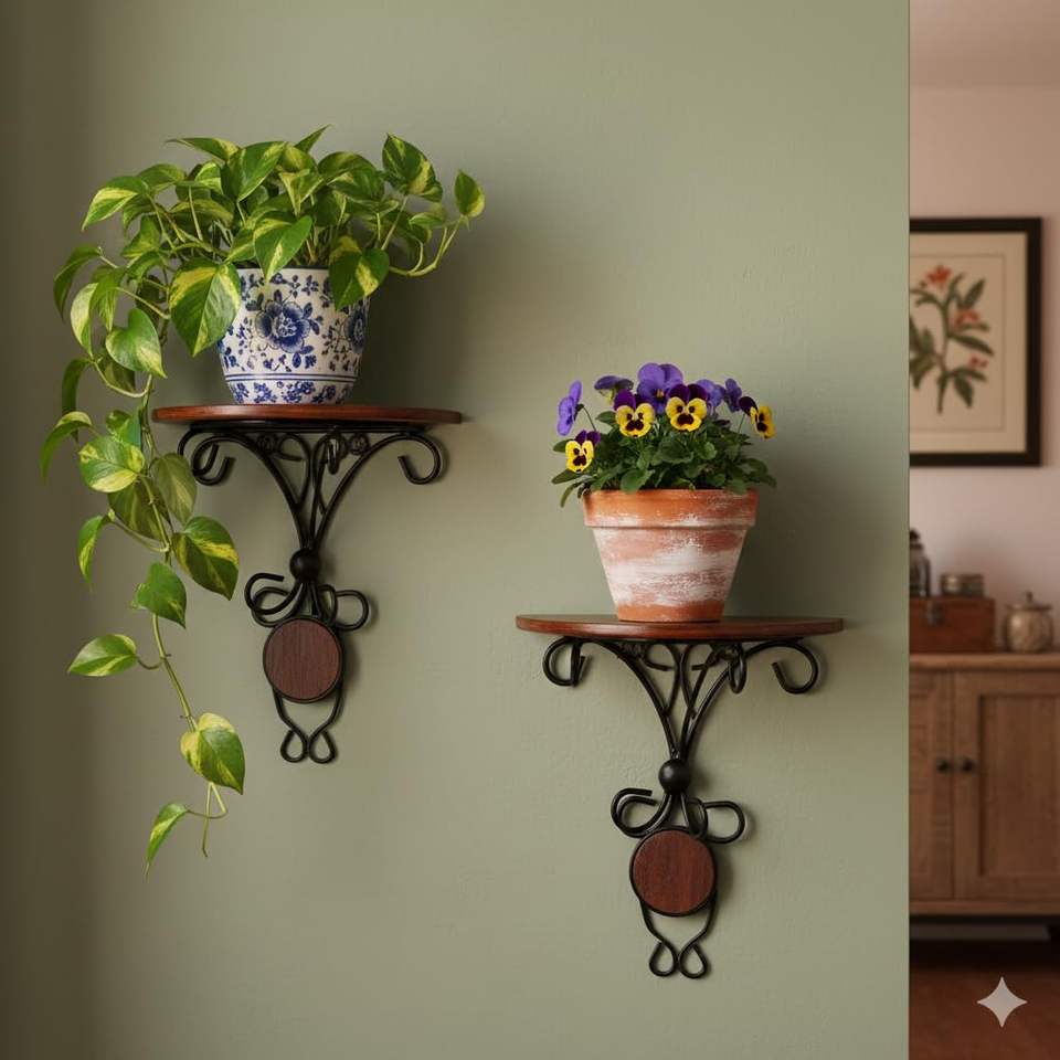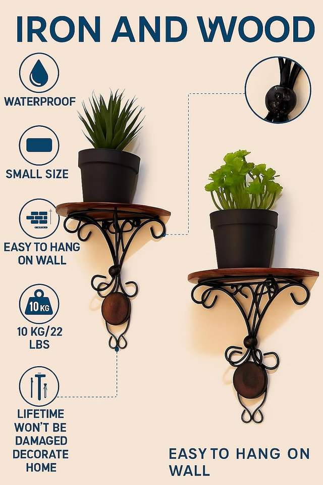ชุดขายึดติดผนังตกแต่งบ้าน 2 ชิ้น – ชั้นวางของติดผนังไม้มะม่วงและเหล็กทองเหลืองสำหรับห้องนั่งเล่น ห้องนอน ทางเดิน