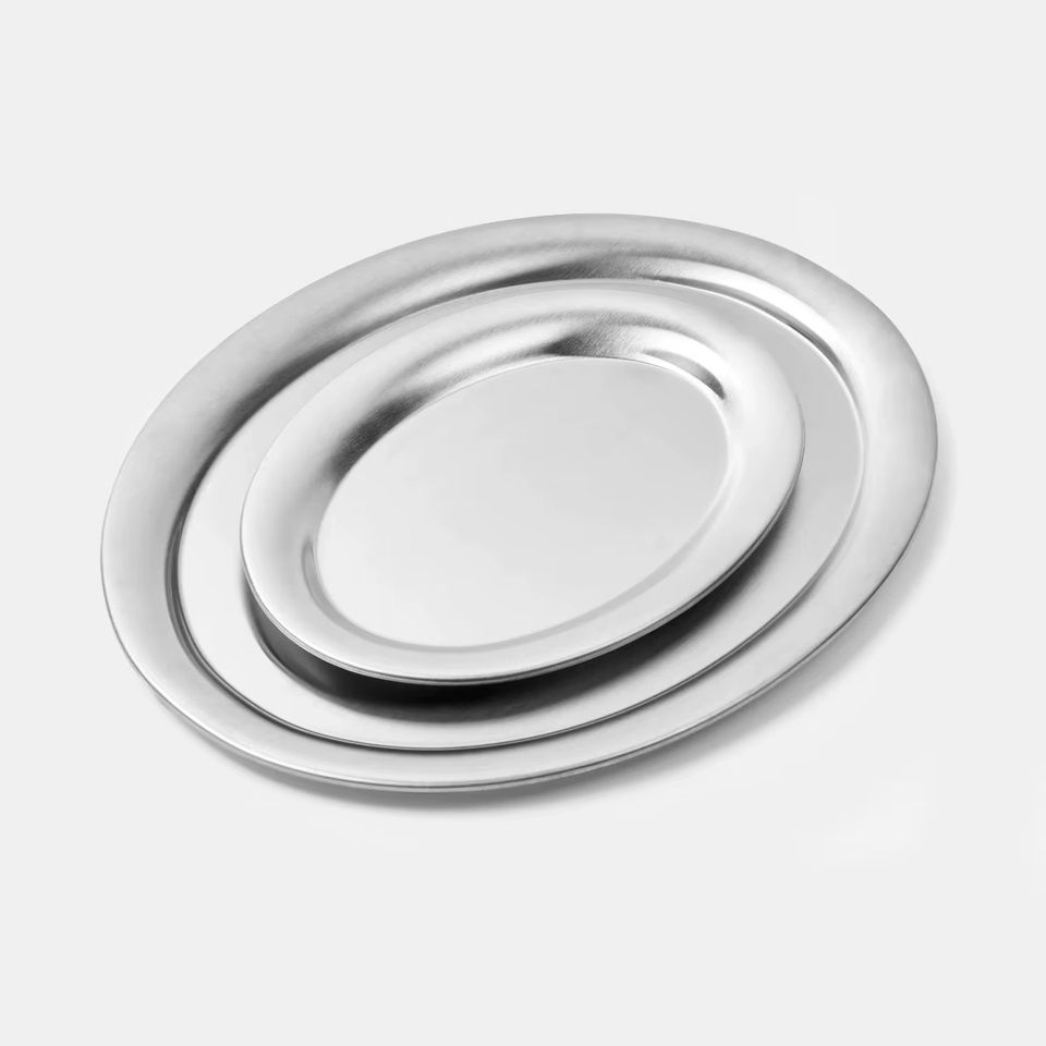 จานสเตนเลสขัดเงาชุด2จานเป็นมิตรต่อสิ่งแวดล้อมสั่งซื้อขั้นต่ำ100ชิ้น