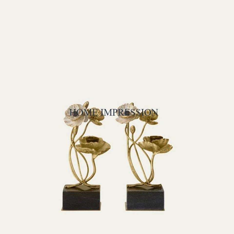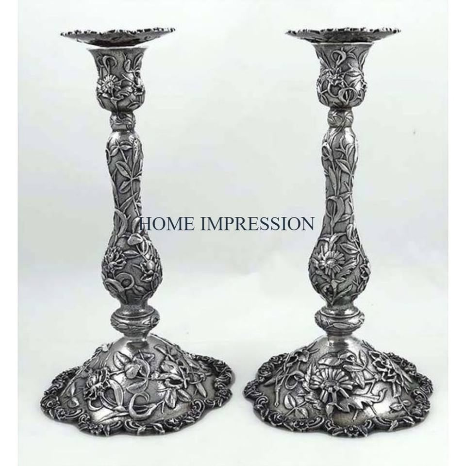 ชุดเชิงเทียนอลูมิเนียมโบราณสำหรับตกแต่งที่เน้นการตกแต่งดอกไม้2ชิ้นที่วางเทียนหรูหรา
