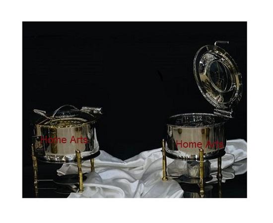 Set of 2 Food Warmer Chafing Dish With Hanging Lid Handmade Round Shape Food Chaffing Dish for Top Selling
