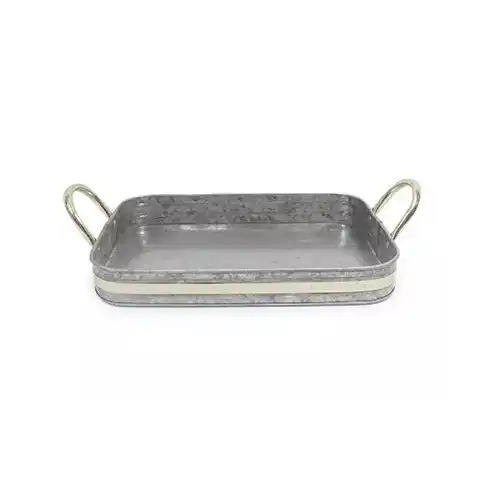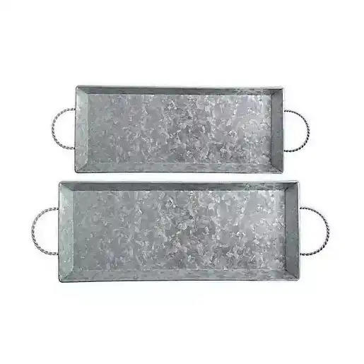 ชุดถาดเสิร์ฟอาหารชุบสังกะสีทรงสี่เหลี่ยมผืนผ้า2ชิ้นจานสำเร็จรูปขนาดใหญ่ทำด้วยมือ