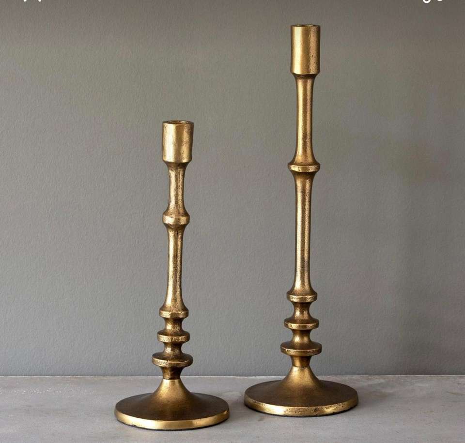 Set of 2 Gold Finished Metal Taper Candle Holders for Home & Wedding Christmas Tabletop Lighting Decor Candle Tapers