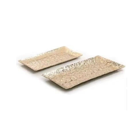 ชุดถาดเสิร์ฟช็อคโกแลตโลหะขัดเงาสีทอง2ชุดอุปกรณ์ที่ใช้ในบ้านและเครื่องครัวถาดเสิร์ฟของหวาน