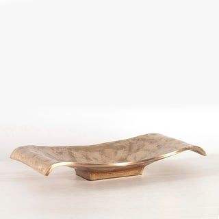 ชุดถาดเสิร์ฟรูปวงรีขอบหยักสีทอง 2 ใบ ถาดตกแต่งหรูหราสำหรับบาร์ โต๊ะเครื่องแป้ง บ้าน ห้องครัว โต๊ะอาหาร