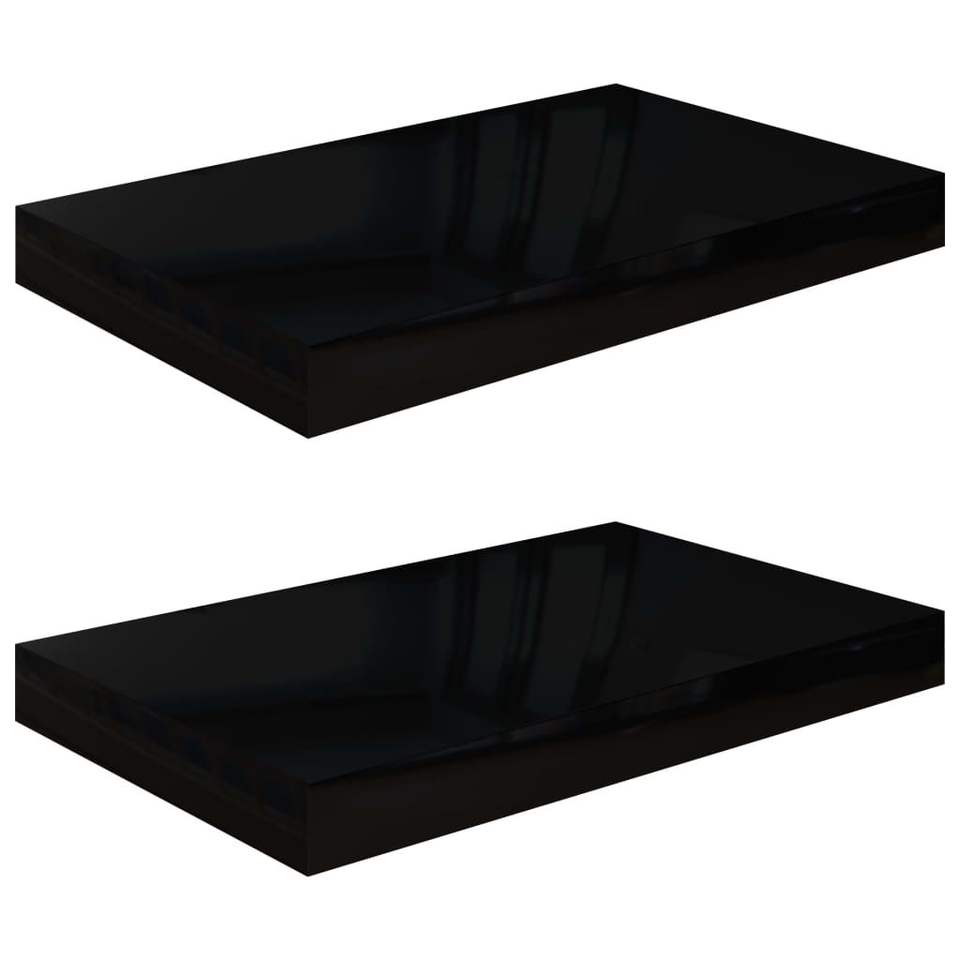 ชุดชั้นวางติดผนัง MDF ลายรังผึ้งสีดำเงาสูง 2 ชิ้น พร้อมโครงโลหะ