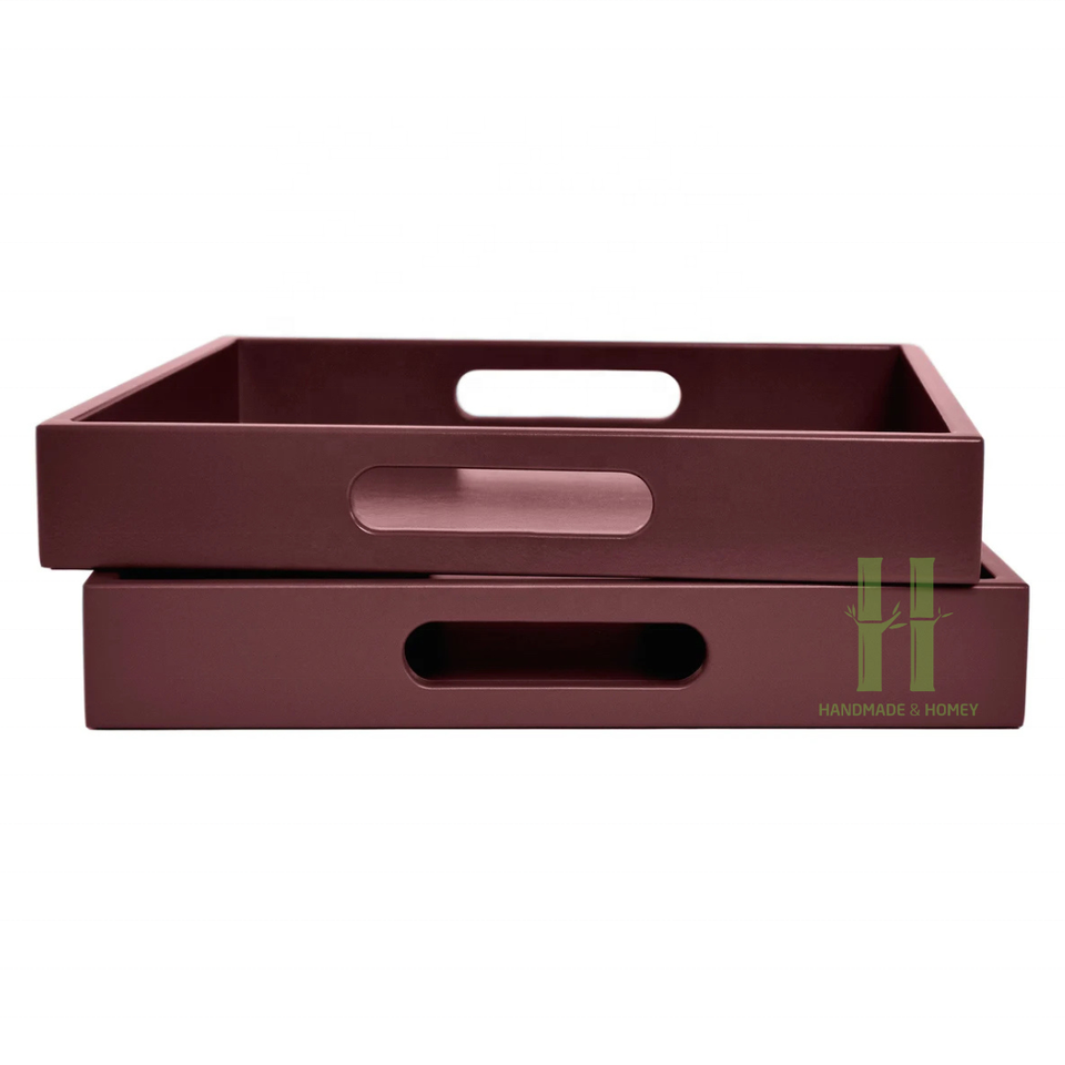 ชุดถาดเสิร์ฟไม้ไผ่ทำมือรักษ์โลก 2 ชิ้น พร้อมโลโก้และสีที่ปรับแต่งได้ตามต้องการ สไตล์วินเทจ ตัวเลือก OEM โดย HNH Craft