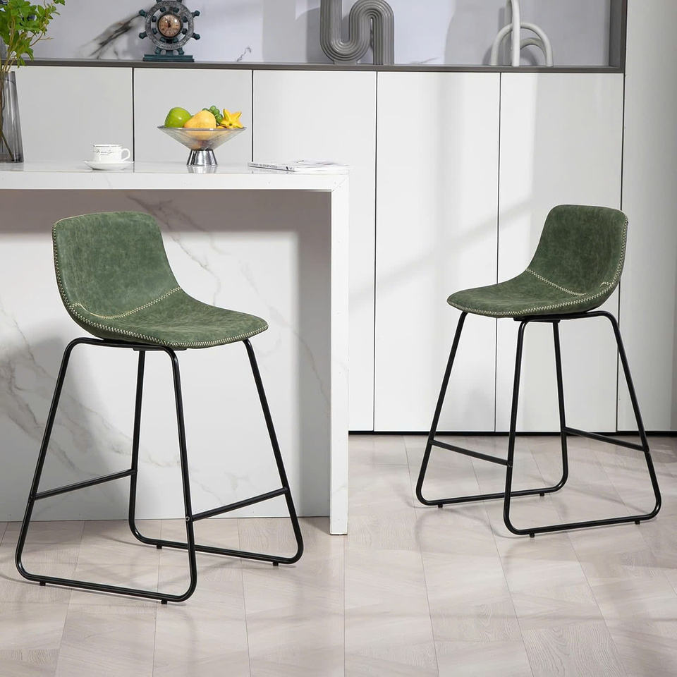 ชุดเก้าอี้บาร์ทันสมัยขนาด 25 นิ้ว 2 ตัวพร้อมพนักพิง หนังเทียมสีน้ำตาลและขาโลหะ เก้าอี้เคาน์เตอร์สำหรับห้องครัว