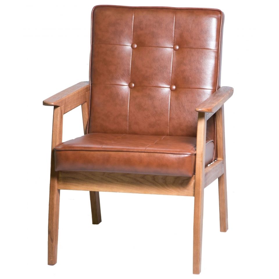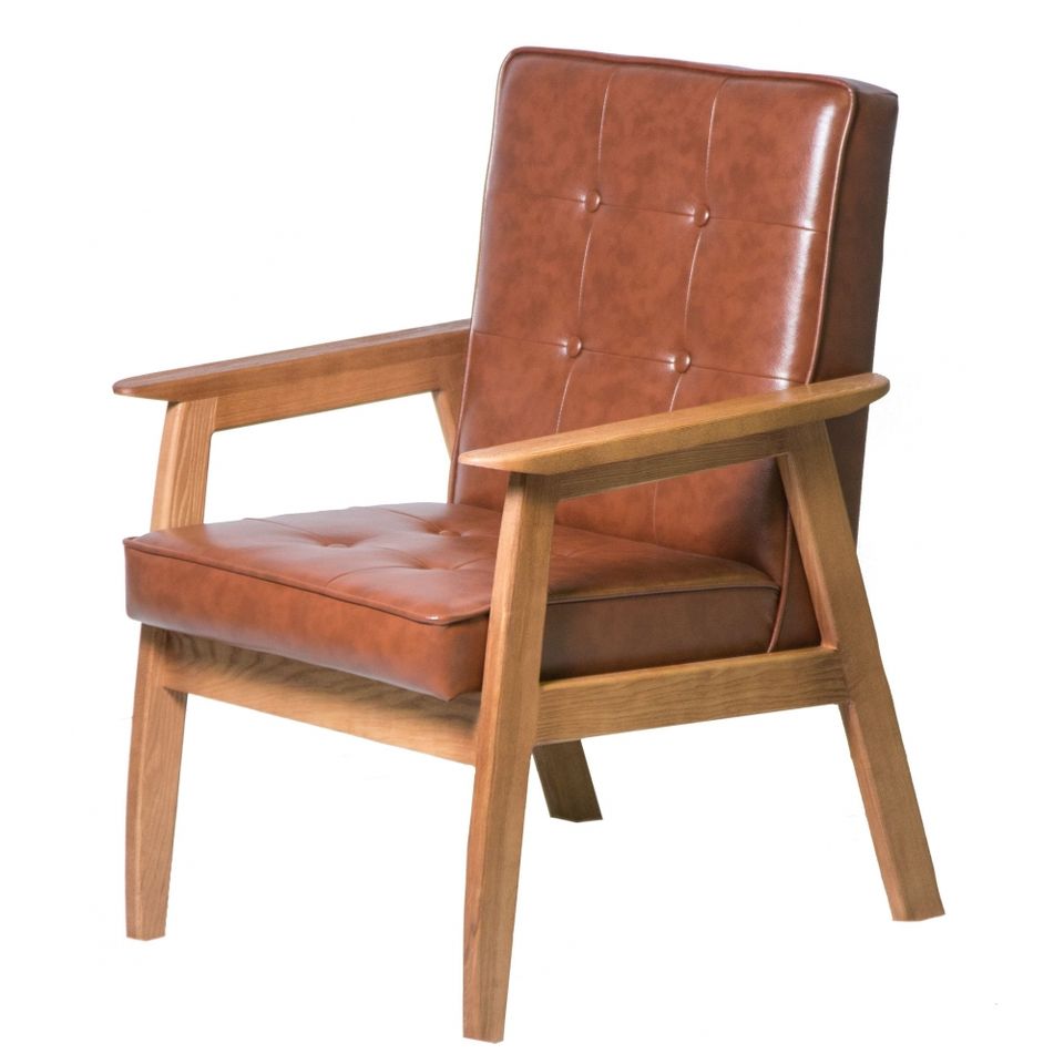 ชุดเก้าอี้ 2 ตัวสไตล์โมเดิร์นมิดเซ็นจูรี่ พร้อมโต๊ะข้าง เก้าอี้ไม้มีที่วางแขนและหุ้มหนัง PU สำหรับใช้ภายในอาคาร