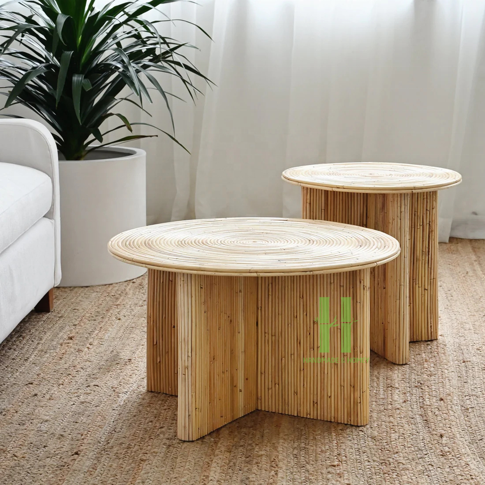 ชุดโต๊ะกาแฟหวายสไตล์มินิมอลแบบโมเดิร์น2ชุดพร้อมดีไซน์หวายทอสำหรับห้องนั่งเล่นเฟอร์นิเจอร์งานฝีมือติดเอง